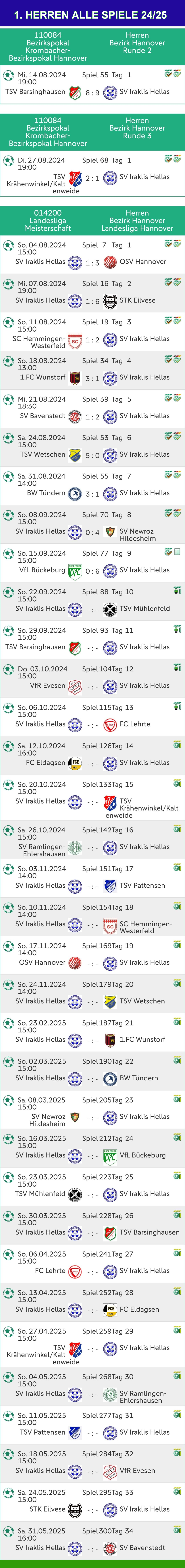 1 Herren alle Saison Spiele - SV IRAKLIS HELLAS HANNOVER