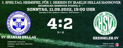 ![]() Bezirksliga Hannover Staffel 3: SV Iraklis Hellas – Heesseler SV, 4:2 (1:1) SSV IRAKLIS HELLAS WIRD DER FAVORITENROLLE GERECHT | |||||