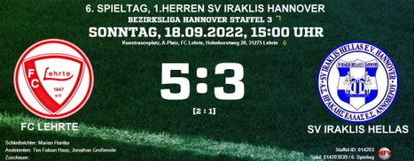 ![]() Bezirksliga Hannover Staffel 3: FC Lehrte – SV Iraklis Hellas, 5:3 (2:1) FC LEHRTE SIEGT IM TOPSPIEL IN LEHRTE | |||||