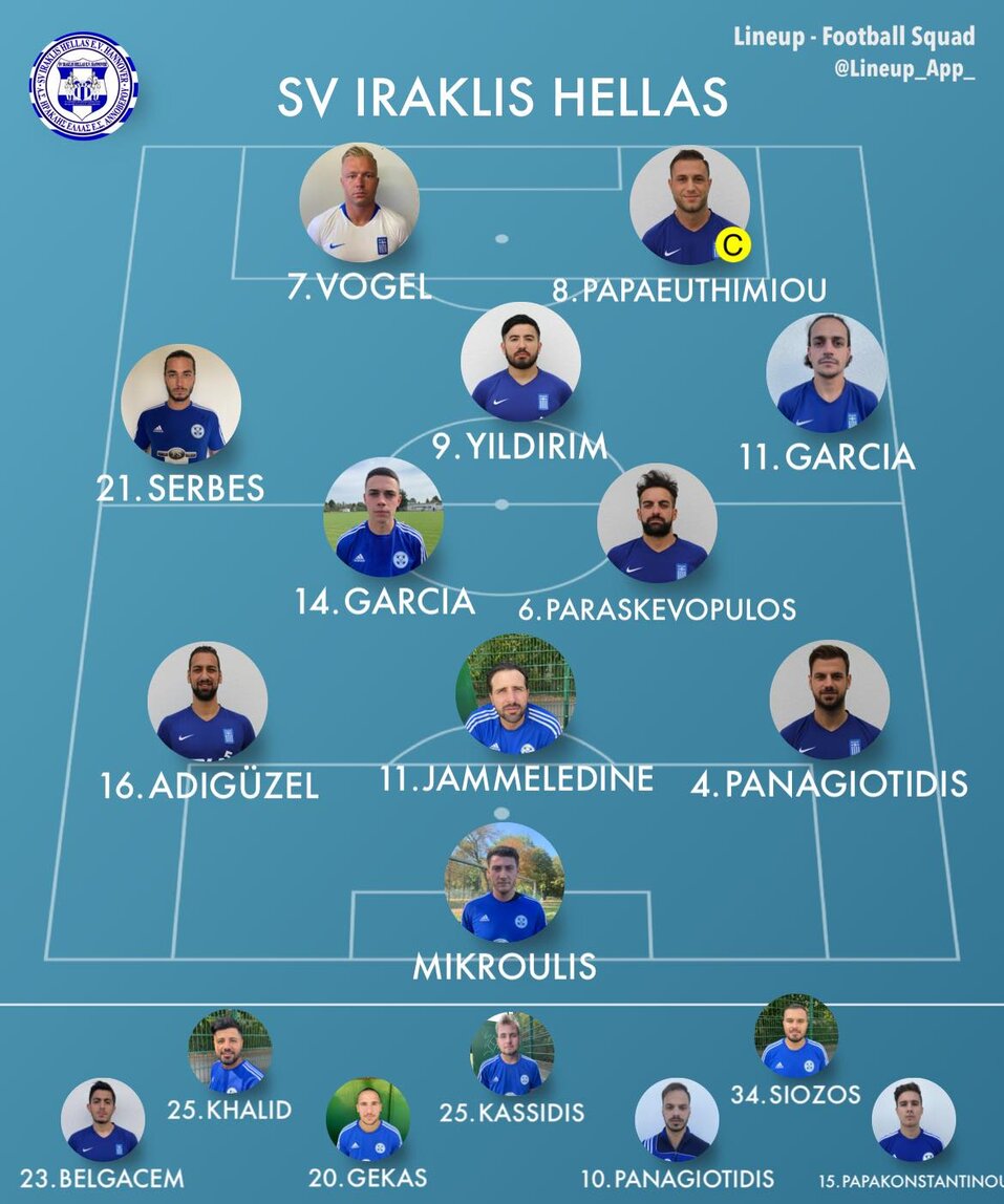 Άλλη μια μεγάλη νίκη για την ομάδα μας αυτή τη φορά εκτός έδρας και σε μία δύσκολη έδρα και έναν αντίπαλο που αδικείται με βάση την χθεσινή εμφάνιση ή την θέση του στο βαθμολογικό πίνακα. Η ομάδα μας βρέθηκε για άλλη μια φορά μόλις στο 3ο λεπτό πίσω στο σκορ στο πρώτο κόρνερ του αγώνα και την πρώτη φάση που δέχτηκε από τον αντίπαλο. Ευτυχώς η αντίδραση της ομάδας ήταν άμεση και μόλις 10 λεπτά μετά ο αρχηγός της ομάδας Παπαευθυμίου Ευάγγελος πέτυχε την ισοφάριση. Στο 19ο λεπτό έγινε ανατροπή με ένα όμορφο γκολ του Umut Yildirim που βοήθησε και στην ψυχολογία της ομάδος. Στο 33ο λεπτό κλείδωσε κατά κάποιο τρόπο το ματς ο πολύ καλός για άλλη μια φορά εξτρέμ της ομάδας Evren Serbes πετυχαίνοντας ένα ωραίο γκολ αλλά να τονίσουμε σ’ αυτό το σημείο ότι μεγάλο και βασικό ρόλο έπαιξε ο γνωστός σε όλους Markus Vogel που όχι μόνο έδωσε δύο ασίστ αλλά βοήθησε και ανασταλτικά και επιθετικά πολύ την ομάδα σ ένα πολύ δύσκολο τερέν και ένα πολύ καλό αντίπαλο μεσοεπιθετικά. Το 1-3 ήταν σκορ ημιχρόνου αλλά και το τελικό σκορ του αγώνα αφού η ομάδα δεν μπήκε όπως έπρεπε στο δεύτερο ημίχρονο δείχνοντας αποσυντονισμένη και βγάζοντας νευρικότητα που μεταφέρθηκε σε όλους τους παίκτες Χωρίς σοβαρό λόγο!!!!!!! Οι προπονητές προχώρησαν σε 4 αλλαγές προσπαθώντας να φέρουν μία ηρεμία στο παιχνίδι αλλά και να φρεσκάρουν την ομάδα κάτι που εν μέρει κατάφεραν αλλά χωρίς να υπάρξει κάποια διαμόρφωση στο σκορ του δεύτερου ημιχρόνου. Και μετά από αυτή τη νίκη η ομάδα μας σκαρφαλώνει στην πρώτη θέση του βαθμολογικού πίνακα Αήττητη περιμένοντας την επόμενη αγωνιστική σε εντός έδρας αγώνα το Hesseler SV | Ein weiterer großartiger Sieg für unser Team, diesmal auswärts und an einem schwierigen Ort und einem Gegner, dem aufgrund der gestrigen Leistung oder seiner Position in der Gesamtwertung Unrecht getan wird. Erst in der 3. Minute geriet unser Team erneut in Rückstand bei der ersten Ecke des Spiels und der ersten Phase, die es vom Gegner erhielt. Glücklicherweise reagierte das Team sofort und nur 10 Minuten später erzielte Teamchef Papaefthymiou Evangelos den Ausgleich. In der 19. Minute kam es mit einem schönen Tor von Umut Yildirim zur Wende, was auch der Psyche der Mannschaft zugute kam. In der 33. Minute wurde das Spiel durch den erneut sehr guten Flügelspieler der Mannschaft Evren Serbes mit einem schönen Tor irgendwie besiegelt, wobei wir an dieser Stelle betonen sollten, dass der altbekannte Markus Vogel eine große und tragende Rolle spielte der nicht nur zwei Vorlagen gab, sondern der Mannschaft in einem sehr schwierigen Feld und einem sehr guten Gegner im Mittelfeld sowohl defensiv als auch offensiv sehr geholfen hat. 1-3 war der Halbzeitstand, aber auch der Endstand des Spiels, da die Mannschaft in der zweiten Halbzeit nicht gut zurechtkam, unorganisiert wirkte und Nervosität zeigte, die sich ohne ernsthaften Grund auf alle Spieler übertrug!!!!! !! Die Trainer nahmen 4 Wechsel vor, um etwas Ruhe ins Spiel zu bringen, aber auch, um die Mannschaft aufzufrischen, was ihnen teilweise gelang, aber ohne Formation im Ergebnis der zweiten Halbzeit. Und nach diesem Sieg klettert unsere Mannschaft auf den ersten Tabellenplatz und wartet ungeschlagen auf den nächsten Spieltag in einem Heimspiel gegen den Hesseler SV. | |||