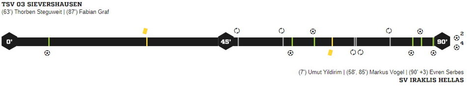 Drei Punkte gingen am Sonntag aufs Konto von SV Iraklis Hellas. Der Tabellenführer setzte sich mit einem 4:2 gegen den TSV 03 Sievershausen durch. SV Iraklis Hellas hatte schon im Vorfeld Rückenwind. Da war es nur ein Leichtes, das Ding sicher nach Hause zu bringen. Für das erste Tor sorgte Umut Yildirim. In der siebten Minute traf der Spieler der Mannschaft von Trainer Patrick Lang ins Schwarze. Bis zum Halbzeitpfiff blieb der knappe Vorsprung des Gasts bestehen. Matthias Salzmann von TSV 03 Sievershausen nahm zum Wiederanpfiff einen Wechsel vor: Nico Schwieger blieb in der Kabine, für ihn kam Nils Borkenhagen. Für das 2:0 von SV Iraklis Hellas zeichnete Markus Vogel verantwortlich (58.). In der 63. Minute brachte Thorben Steguweit den Ball im Netz von SV Iraklis Hellas unter. In der 72. Minute stellte SV Iraklis Hellas personell um: Per Doppelwechsel kamen Evren Serbes und Ramiar Khalid Rahman Rahman auf den Platz und ersetzten Konstantinos Papakonstantinou und Ahmed Jameleddine. Das 3:1 für SV Iraklis Hellas stellte Vogel sicher. In der 85. Minute traf er zum zweiten Mal während der Partie. Fabian Graf schoss für den TSV 03 Sievershausen in der 87. Minute das zweite Tor. Es waren nur noch wenige Augenblicke zu spielen, als Serbes für einen Treffer sorgte (93.). Am Schluss siegte SV Iraklis Hellas gegen den TSV 03 Sievershausen. Der TSV 03 Sievershausen muss sich ohne Zweifel um die eigene Abwehr kümmern. Im Schnitt kassierte das Team mehr als zwei Gegentreffer pro Spiel. Die Gastgeber krebsen im Tabellenkeller herum – aktueller Tabellenplatz: zwölf. Der TSV 03 Sievershausen musste sich nun schon fünfmal in dieser Spielzeit geschlagen geben. Da der TSV 03 Sievershausen insgesamt auch nur zwei Siege und ein Unentschieden vorweisen kann, sind die Aussichten ziemlich düster. Die Lage des TSV 03 Sievershausen bleibt angespannt. Gegen SV Iraklis Hellas musste man zum zweiten Mal in Folge die Punkte abgeben. Die errungenen drei Zähler gingen für SV Iraklis Hellas einher mit der Übernahme der Tabellenführung. Erfolgsgarant von SV Iraklis Hellas ist die funktionierende Offensivabteilung, die mit 33 Treffern den Liga-Bestwert aufzeigt. Die Saisonbilanz von SV Iraklis Hellas sieht damit weiter sehr positiv aus. Bei sechs Siegen und zwei Unentschieden büßte SV Iraklis Hellas lediglich eine Niederlage ein. SV Iraklis Hellas erfüllte zuletzt die Erwartungen und verbuchte aus den jüngsten fünf Partien zehn Zähler. Nächster Prüfstein für den TSV 03 Sievershausen ist der FC Lehrte auf gegnerischer Anlage (Sonntag, 15:00). SV Iraklis Hellas misst sich zur selben Zeit mit dem MTV Ilten. Autor/-in: FUSSBALL.DE (Dieser Text wurde auf Basis der dem DFB vorliegenden offiziellen Spieldaten am 09.10.2022 um 18:04 Uhr automatisch generiert) | |||||