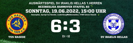 Für das erste Tor sorgte Umut Yildirim. In der 17. Minute traf der Spieler von SV Iraklis Hellas ins Schwarze. Björn Karkoß trug sich in der 29. Spielminute in die Torschützenliste ein. Eine Aussage darüber, wer am Ende die Nase vorn haben würde, war nach dem Abpfiff der ersten Halbzeit noch nicht zu treffen. Es ging mit einem Gleichstand in die Kabinen. Die nächsten beiden Treffer waren einem Mann vorbehalten: Karkoß schnürte einen Doppelpack (46./53.), sodass der TuS Hasede fortan mit 3:1 führte. Zwei schnelle Treffer von Nasser Abdolkhani (61.) und Niclas Holland (66.) sorgten für die Vorentscheidung zugunsten des Teams von Coach Björn Zimmermann. Yildirim beförderte das Leder zum 2:5 von SV Iraklis Hellas über die Linie (69.). Mit dem dritten Treffer von Umut Yildirim rückte die Elf von Trainer Patrick Lang wieder ein wenig an den TuS Hasede heran (70.). Leon Hachmeister besorgte in der Schlussphase schließlich den sechsten Treffer für den TuS Hasede (78.). Mit dem Schlusspfiff durch Schiedsrichter Hasan Akinci gewann die Heimmannschaft gegen SV Iraklis Hellas.