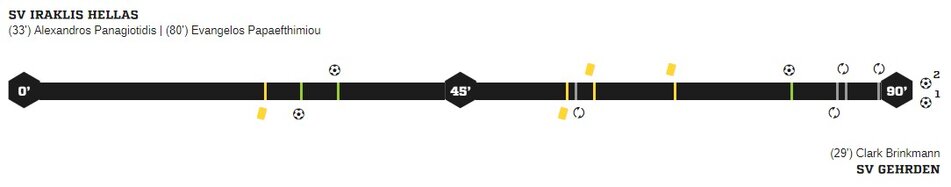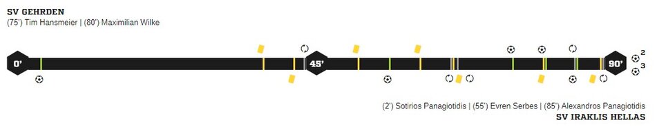 Clark Brinkmann brachte den SV Gehrden in der 29. Spielminute in Führung. Die passende Antwort hatte Alexandros Panagiotidis parat, als er in der 33. Minute zum Ausgleich traf. Zur Halbzeit war die Partie noch vollkommen offen. Remis lautete das Zwischenresultat. Dass der SV Iraklis Hellas in der Schlussphase auf den Sieg hoffte, war das Verdienst von Evangelos Papaefthimiou, der in der 80. Minute zur Stelle war. Schließlich holte das Team von Patrick Lang gegen den direkten Abstiegskonkurrenten die Big Points und feierte einen 2:1-Sieg.