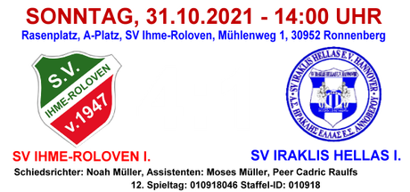 SV Ihme-Roloven – SV Iraklis Hellas (Sonntag, 14:00 Uhr)