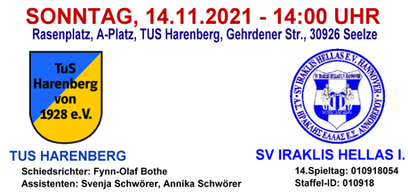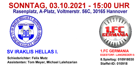 Am kommenden Sonntag trifft der SV Iraklis Hellas auf den Mühlenberger SV, 1.FC Germania Egestorf-Langreder II spielt tags zuvor gegen den SV Ihme-Roloven.