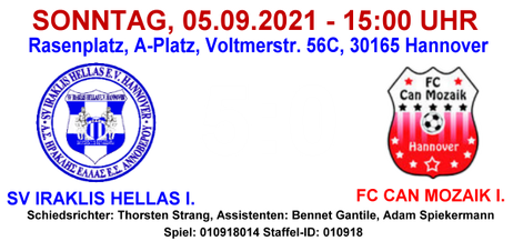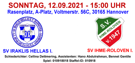 Bezirksliga Hannover Staffel 7: SV Iraklis Hellas – SV Ihme-Roloven (Sonntag, 12.09.2021 um 15:00 Uhr)