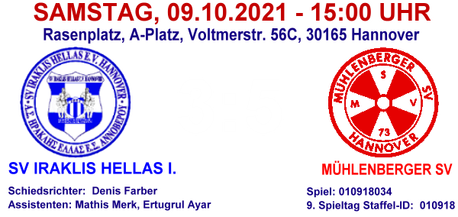 Am kommenden Sonntag trifft der Mühlenberger SV auf den SV Ihme-Roloven (15:00 Uhr), der SV Iraklis Hellas reist zu SV Gehrden (13:00 Uhr).