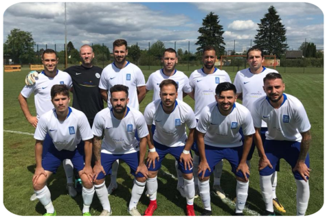 Nach einem konzentrierten Start und zwei guten Offensivaktionen begannen unsere Kicker das Spiel. Danach gab es eine Phase, in der keine Mannschaft sich einen Vorteil erspielen könnte, bis zur 21.Minute, als sich Evangelos Papaefthimiou ein Herz fasste und entschlossen den Ball aus 25.Metern in den oberen Winkel bugsierte. In der ersten Halbzeit war es noch ein durchwachsenes Spiel, mit einigen guten Spielzügen für die Hellenen, aber es fehlte an den richtigen Entscheidungen und an der Präzision im Spiel in die Tiefe.