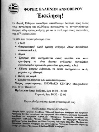 das ist ein Aufruf der Griechischen Gemeinde Hannover, aller griechischen Vereine Hannovers und der griechisch-Orthodoxen Kirche Hannovers. Unsere Hilfe ist gefragt! Bitte helft mit euren Spenden den Opfern des großen Brandes.