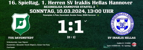Die 1. Herren des SV Iraklis Hellas Hannover Unterlag zuhause gegen Niedersachsen Döhren 0:2
