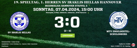 Bei herrlichem Wetter am Sonntag 07.04.2024 um 15:00 Uhr traf die 1. Herren zuhause auf die Mannschaft von MTV Engelbostel-Schulenburg (15 P. Tabelle 12.) und Trotz Unterbesetzung des Kaders hat einen zufriedenstellenden 3:0 Sieg errungen und bleibt mit 42 Punkten Tabellenführer.