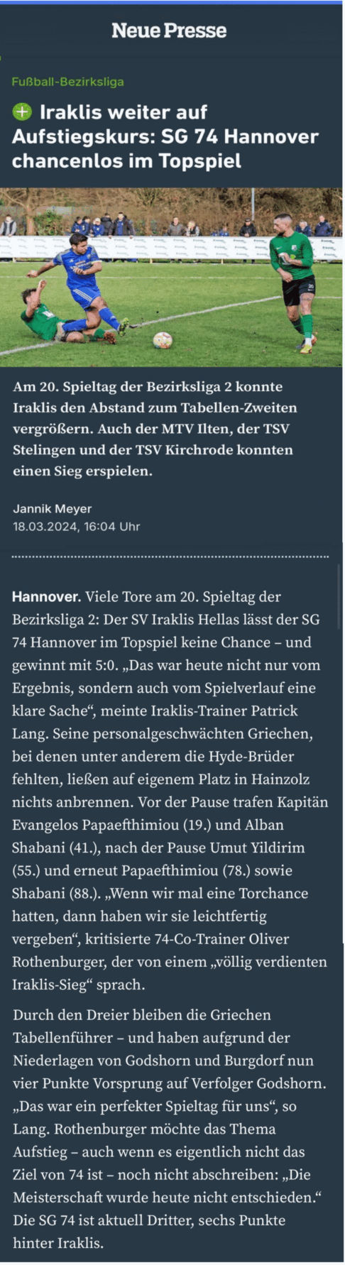 Der SV Iraklis Hellas Hannover hat nach der Winterpause seine Ü40 Senioren Mannschaft abgemeldet.