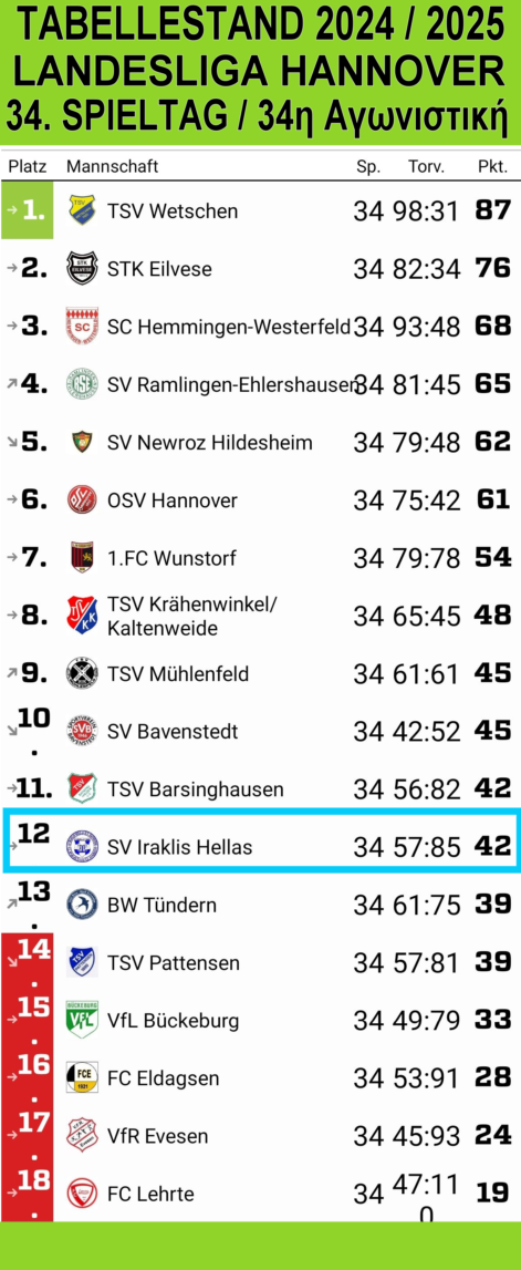 1. Herren SV Iraklis Hellas Hannover, Landesliga Klassenerhalt für Saison 2025-2026